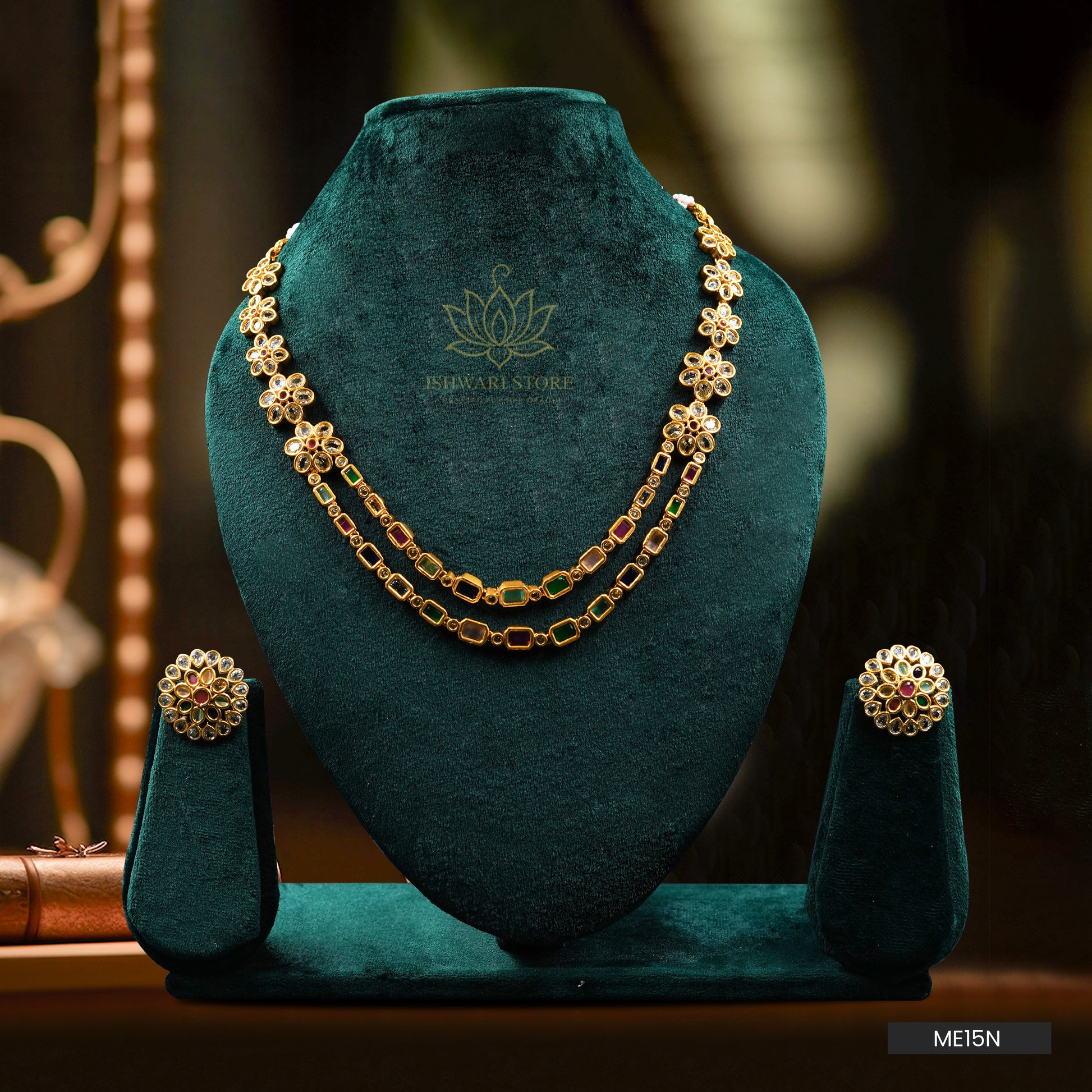 Double Layered Multi color Stone Necklace (ME15N)