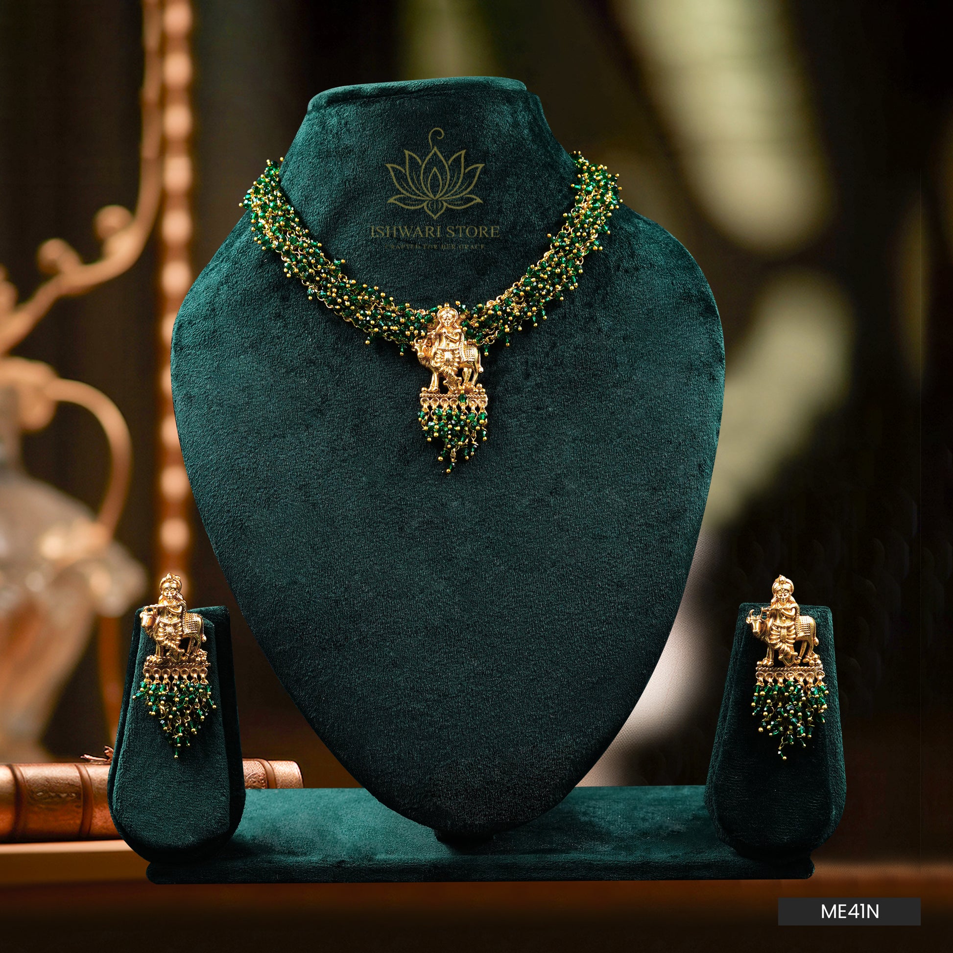 Green Cluster Bead Chain With Sree krishna Pendant Neckpiece Set (ME41N)