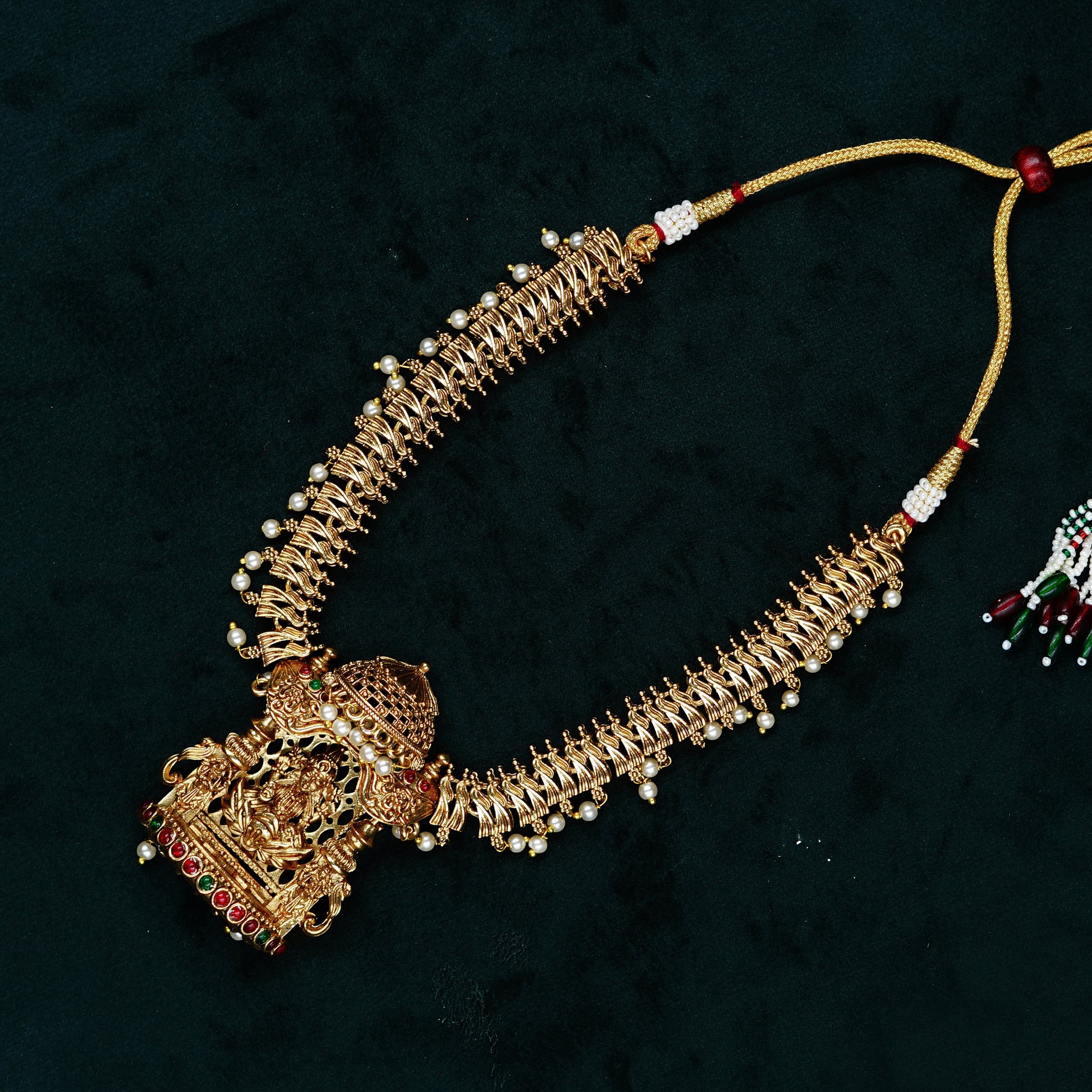 Matte Gold Plated Temple Lakshmi Short Necklace Set