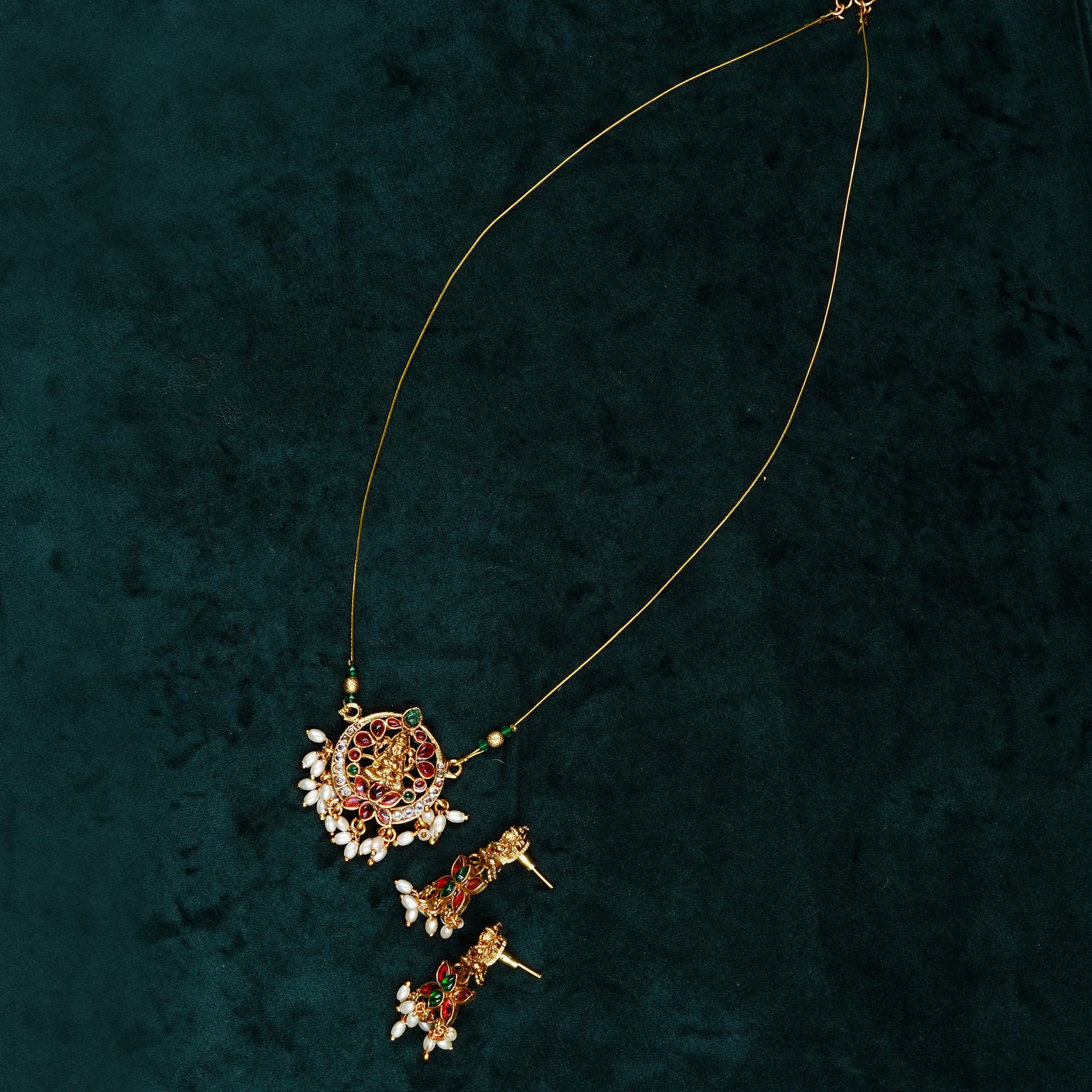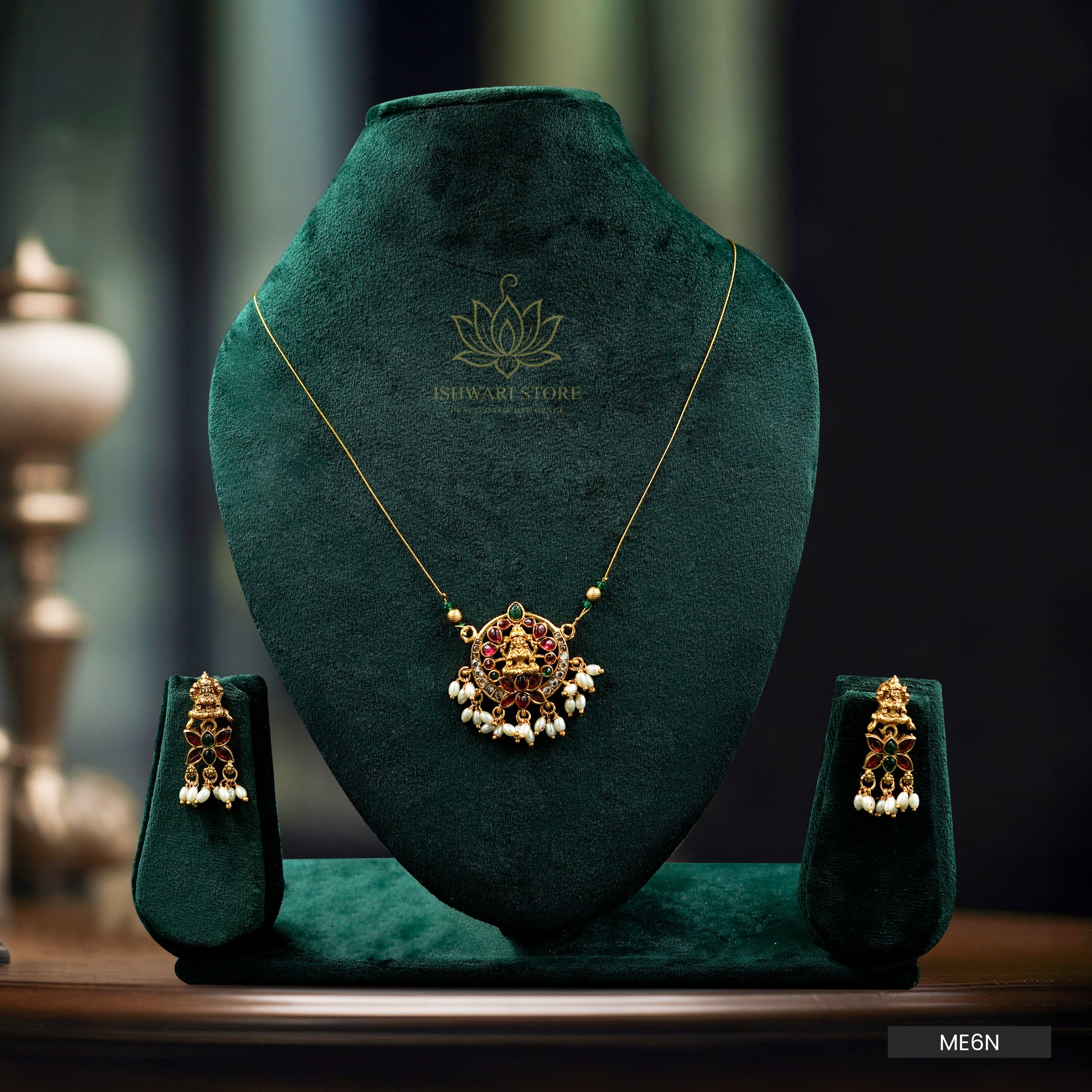 Thread Mala With Lakshmi Pendant With Earrings (ME6N)